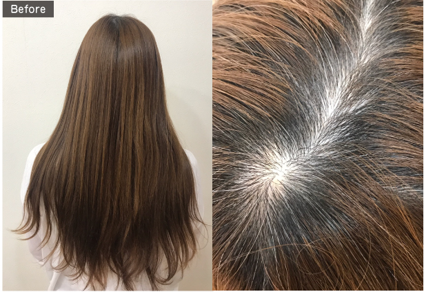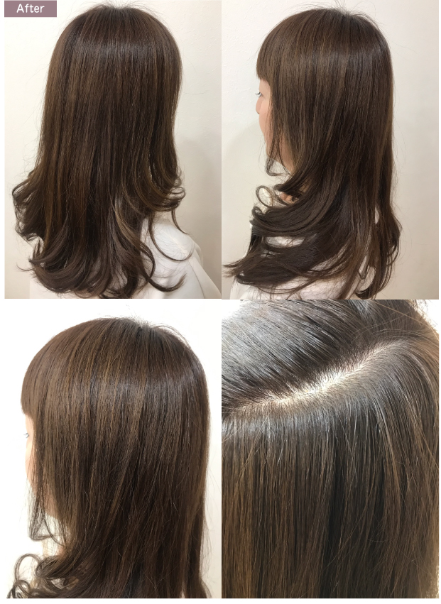 - 白髪率の高い方はグレイカラーと組み合わせて明るい白髪染め対応