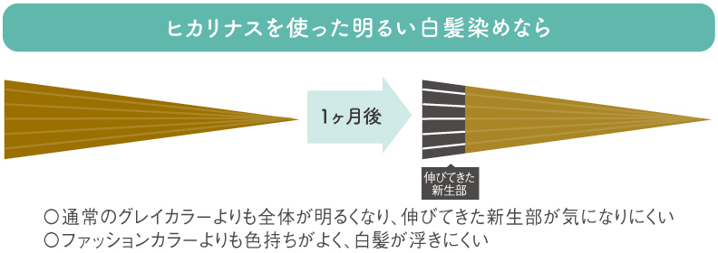 ※ヒカリナスの中では赤味・茶味が最も少ないため、白髪の染まり・なじみは他の色よりも劣ります。