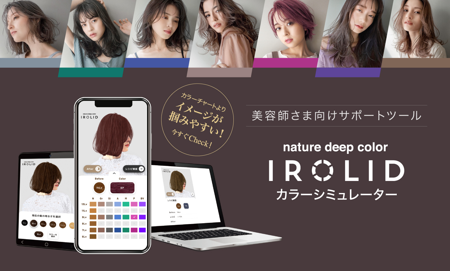 ブリーチ力に頼らず濃厚な発色を実現する『ネイチャーディープカラー イロリド』(以下、イロリド)は、アンダーの赤味や黄味で色ブレせず狙い通りに仕上がるこだわりの色相で、全7系統32色のラインナップです。