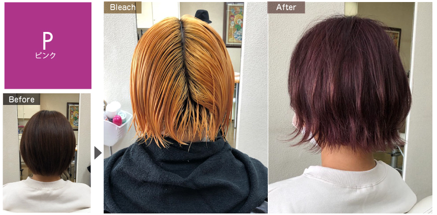 ※彩度を出すにはできるだけ明るくリフトさせてください。さらにビビッドなピンクに仕上げるにはブリーチが必要になります。