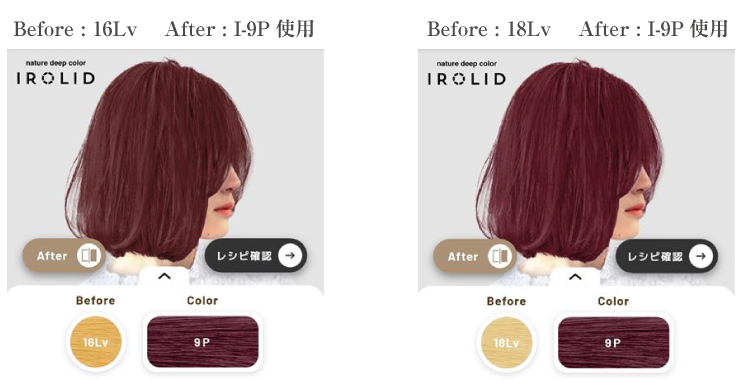 <Before:16Lv・18Lvのイロリド9Lvピンク使用の色味の目安>