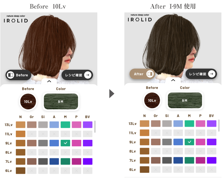 <Before:10Lvのイロリド9Lvマット使用の色味の目安>