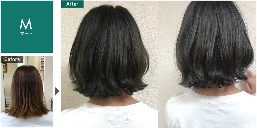 ③ダブルカラー事例:ハイライト+5レベルを使用して深みのあるオリーブカラーに