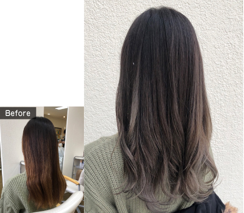 ②ビフォー8Lv事例:低明度の髪でも透け感のある仕上がり