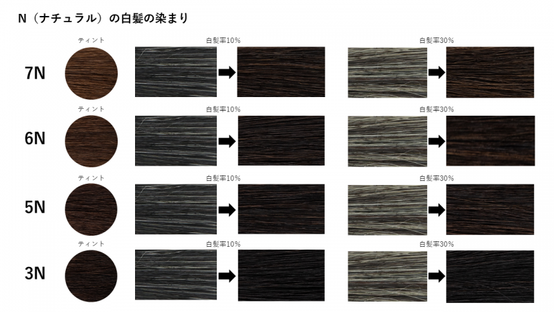 7レベル以下のN(ナチュラル)は白髪染めとしても使用可能です。