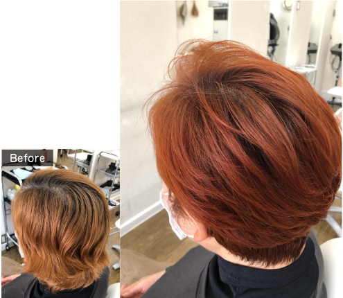 明るさと色味で白髪をなじませた「オレンジカラー」