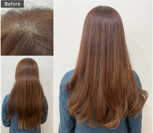 ※白髪率が高い方なので、ヒカリナス7Lvで明るく仕上がっています。白髪率や事前状態に併せてヒカリナス9Lvを使用してください。