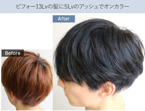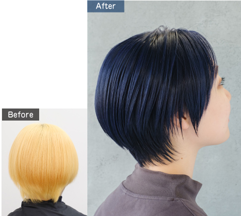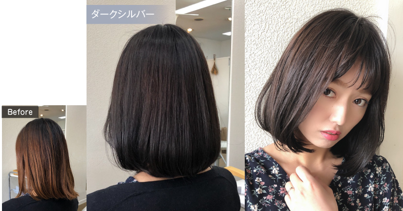 ただし、暗い髪にそのままオンカラーしてもブルーやグレイが感じられないため、アンダーの状態に合わせたレシピ調整などが必要です。