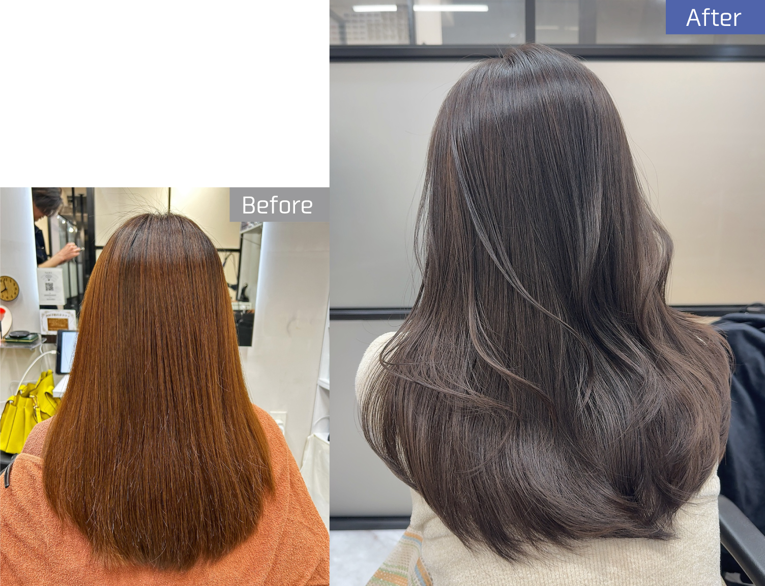 シャンプーすると、必ず根元や中間のOXが強い薬が毛先に流れて反応するじゃないですか。