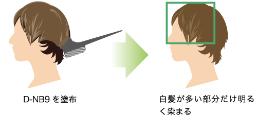 特に9レベルの薬剤は、白髪率によって明るさが左右されやすい傾向にありますので、部分的に白髪率が大きく違うということでしたら、塗分けをしていただくことで仕上がりがキレイになります。