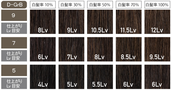 8Lvの仕上がりをご希望の場合は9Lvと7Lvを1:1、6Lvの仕上がりをご希望の場合は7Lvと5Lvを1:1でMixしてご使用ください。