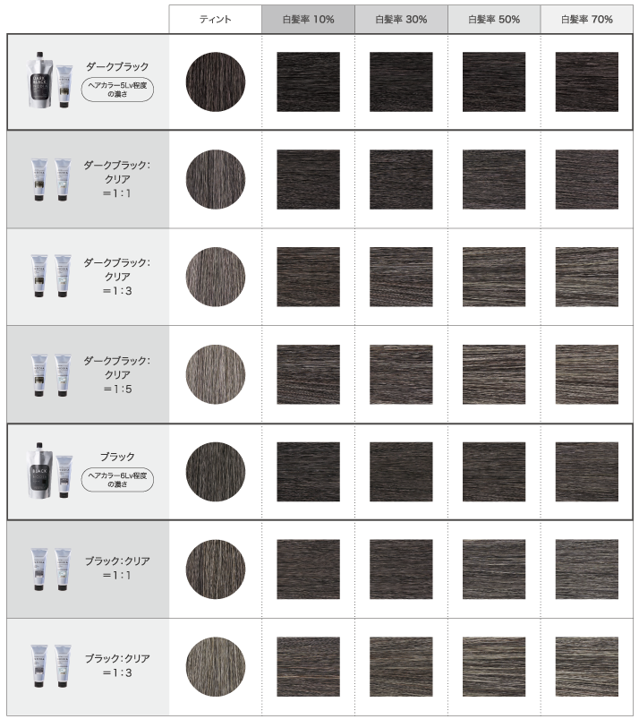 クリアとのMixは既染部の使用にオススメします。クリアが多すぎると、白髪ぼかしとしても色持ちは悪くなります。
