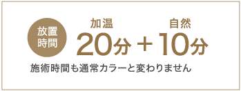 基本的に、「温度」「時間」が大きいほど、染まりとトリートメント性が高まる傾向にあります。時間を短縮されると、染まり・色持ち・トリートメント性が弱まりますのでご注意ください。