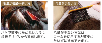 ※地肌に直接溜めない程度にハケで塗布してください。(ファッションカラーの塗布のイメージ)