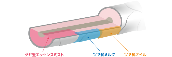 “ツヤ髪オイルまたはツヤ髪ミルク”はキューティクルの外側からのケアですので、