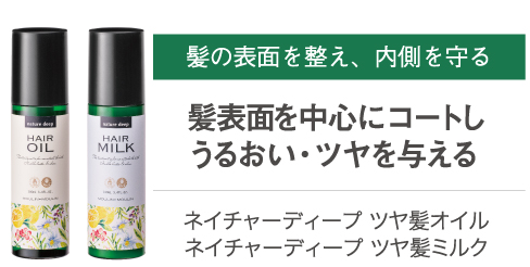 “ツヤ髪オイルまたはツヤ髪ミルク”・・・キューティクルの表面を整えて髪の内側を守る