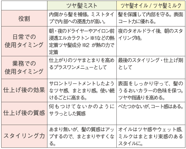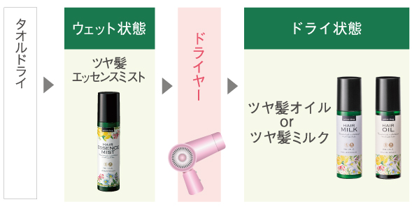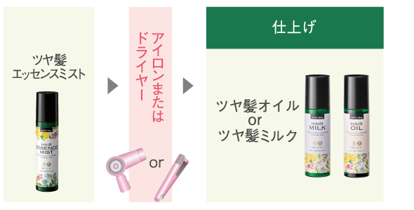 “ツヤ髪エッセンスミスト”と“ツヤ髪オイルまたはツヤ髪ミルク”を併用する場合