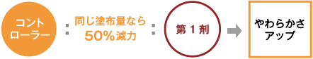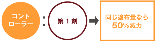 コントローラーを塗布してから1剤を塗布するとき、同じ塗布量で1剤のパワーを50%減力します。
