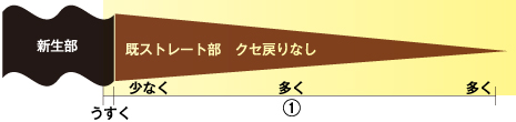 既ストレート部5mm程度にうすくオーバーラップします。 - クセ戻りが少しある部分に第1剤塗布