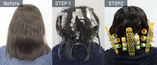 ※カーリング後に裾カラーを行うため、普段よりしっかりカールをかけておきます。