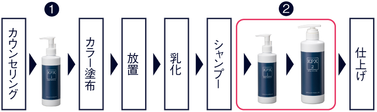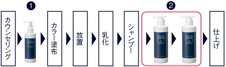 その後、洗い流さずにトリートメントKPX2を塗布します。