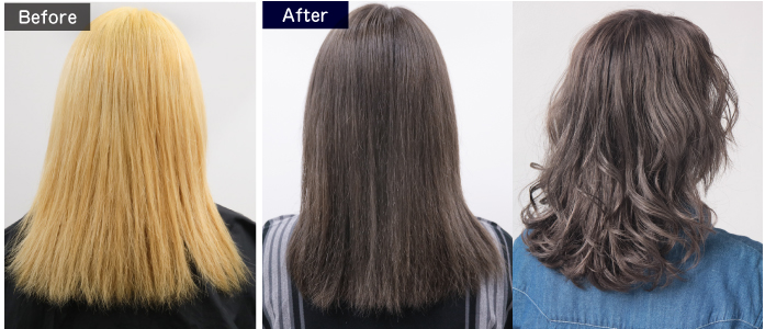 カラー、ブリーチを繰り返した髪も美しいカラーが可能