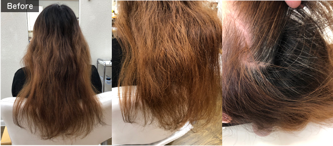 元々クセもあり、毛先にツヤを感じにくい毛質に加え、セルフカラー&ブリーチによるダメージもある状態。
