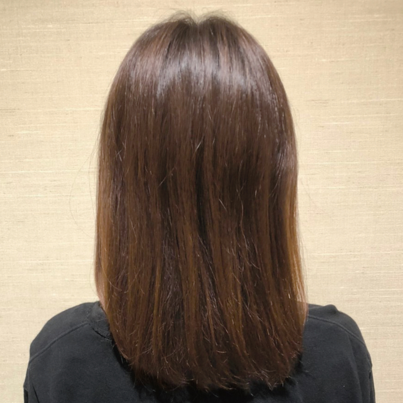低明度の赤味のある髪も透明感を出しながらアッシュを濃く入れるレシピ。