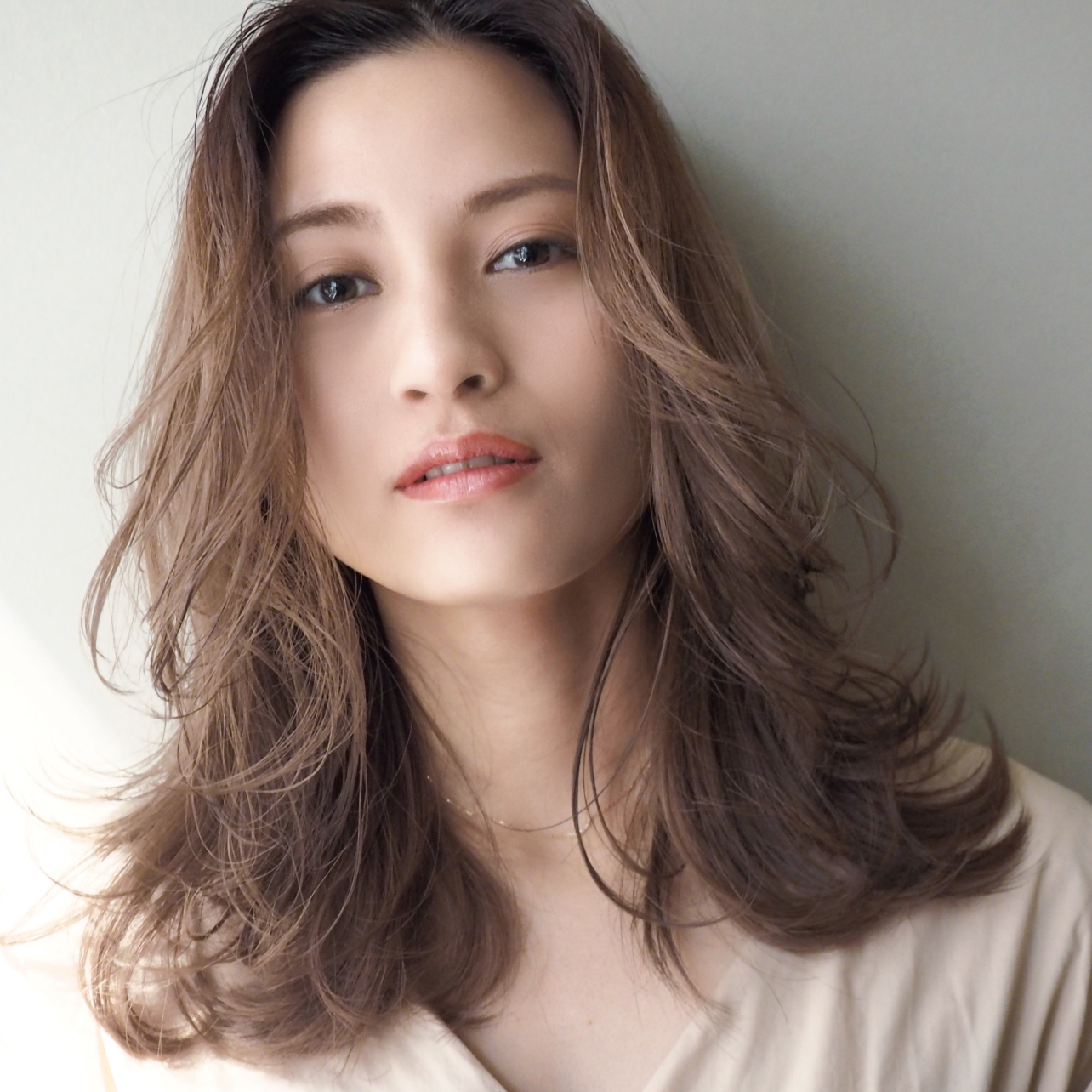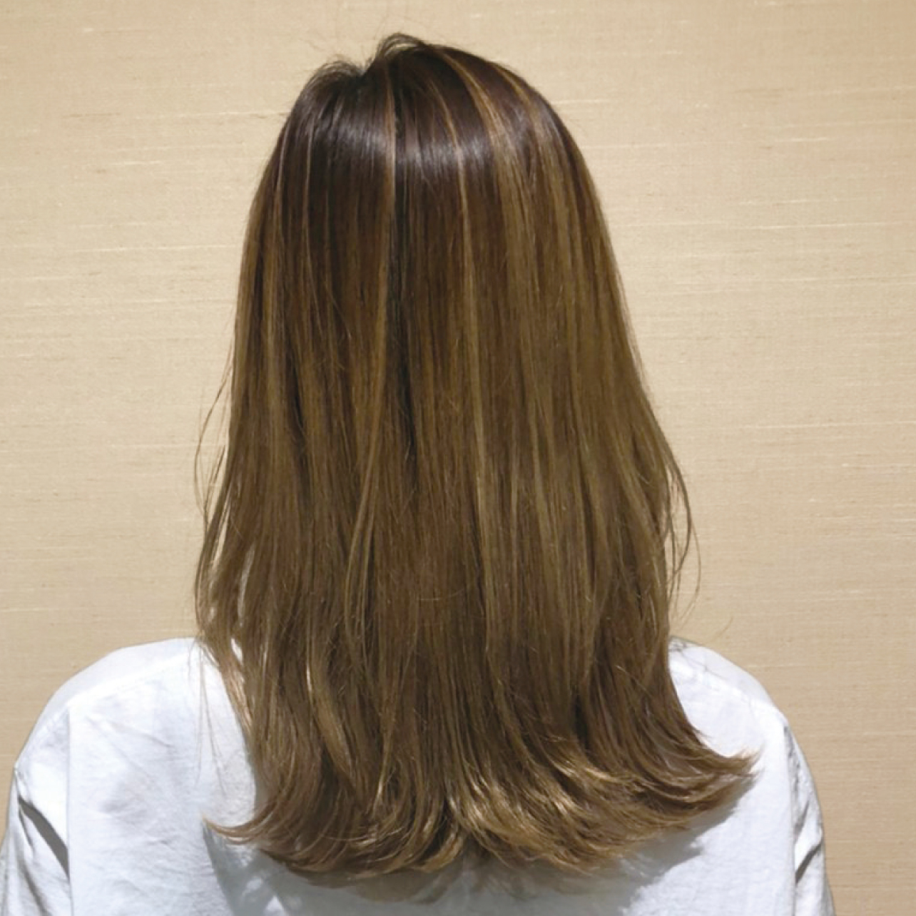 既染部にハイライトやグラデーションを活かしながら、赤味を抑えたナチュラルブラウンの色味を補給。トーンダウンで沈みすぎず、やわらかでヌーディな仕上がりに。