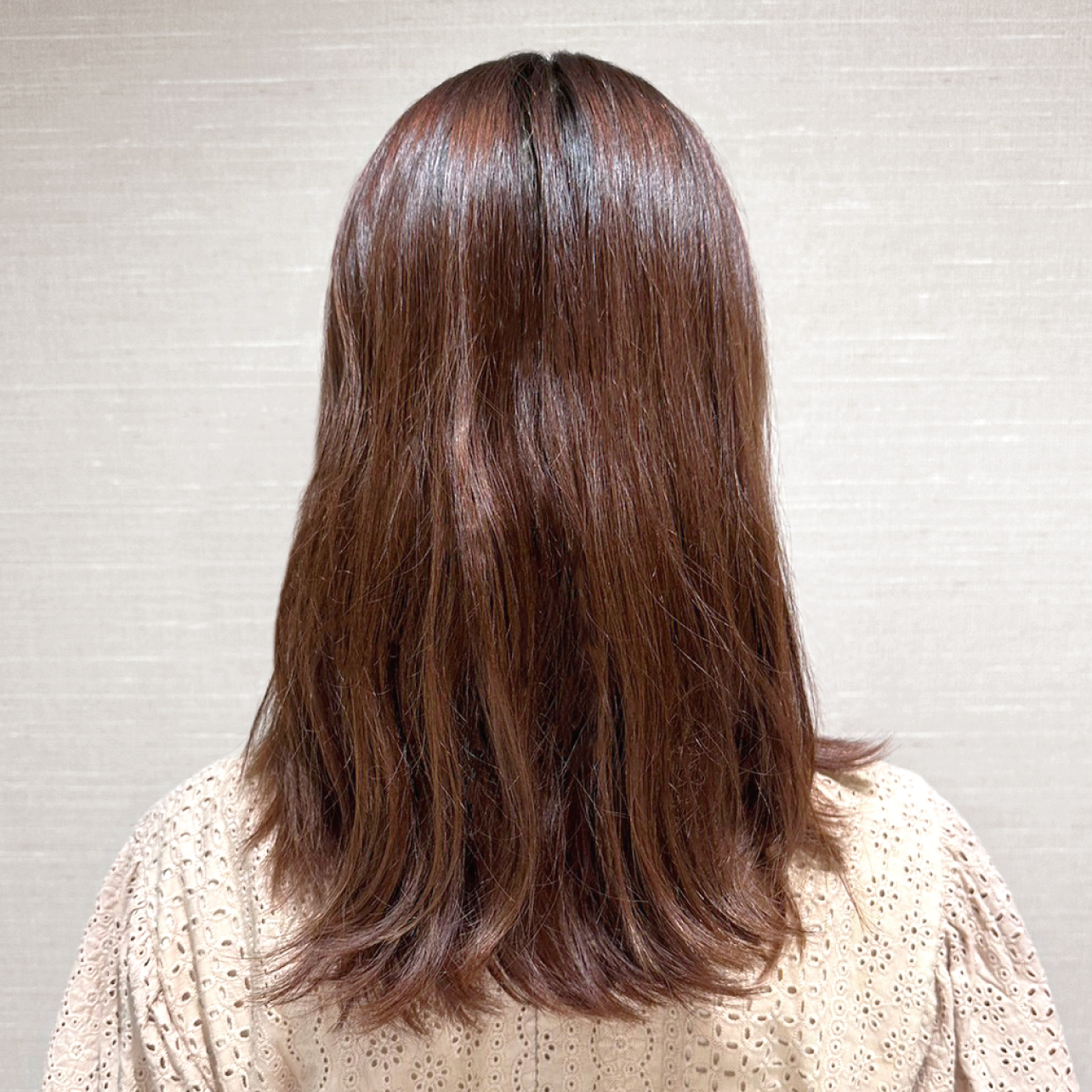新生部 H-PBe9:PBe11=1:1(2剤6%) 既染部 H-PBe11(2剤 6%) (PBe:ピンクベージュ)