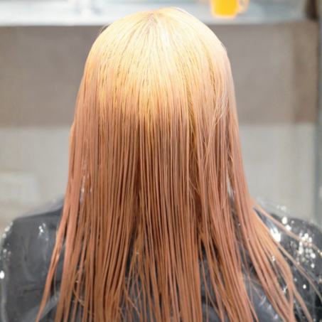 リタッチのみブリーチのところにワンカップ選定なので、ナチュラル系カラーをベースにしてムラが出ないようにする。