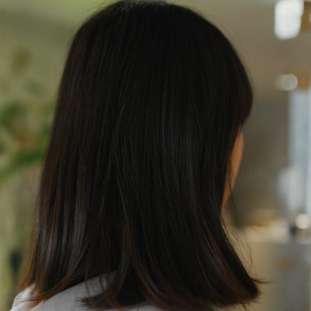 明るめの仕上がりにしたいのと、あまりくすませすぎないようにアッシュ味の少ない薬剤でくすませる。ブリーチベースを綺麗に整えるために、ムラ補正としてアルカリの高い13レベルを使う。オンカラーの塗布はスピーディーに行う。