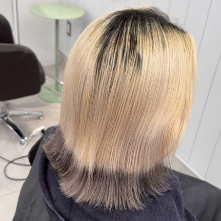 グレージュでグレイ感、ブルーバイオレットでラベンダー感をだして、薄いホワイトラベンダーベースを作り、そこに濃いめの7トーンを10%加えて色味を表現。
