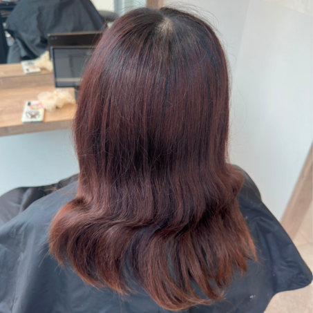 赤系は根元が入りやすいため、根元が明るくならないようにトーンを少し下げて選定。