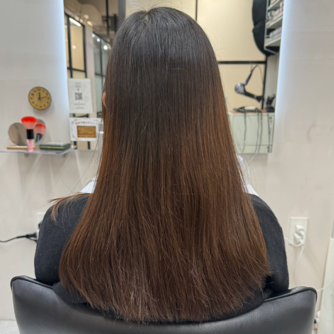 マットベージュベースで赤味のない感じで仕上げたかったので、毛先の補色はピンクベージュの割合を5対1にして、毛先のツヤ感を出すぐらいの感覚で。