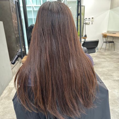 黄色く退色するのが苦手なお客さまのため、ピンクを補色として使いまろやかな色味に。