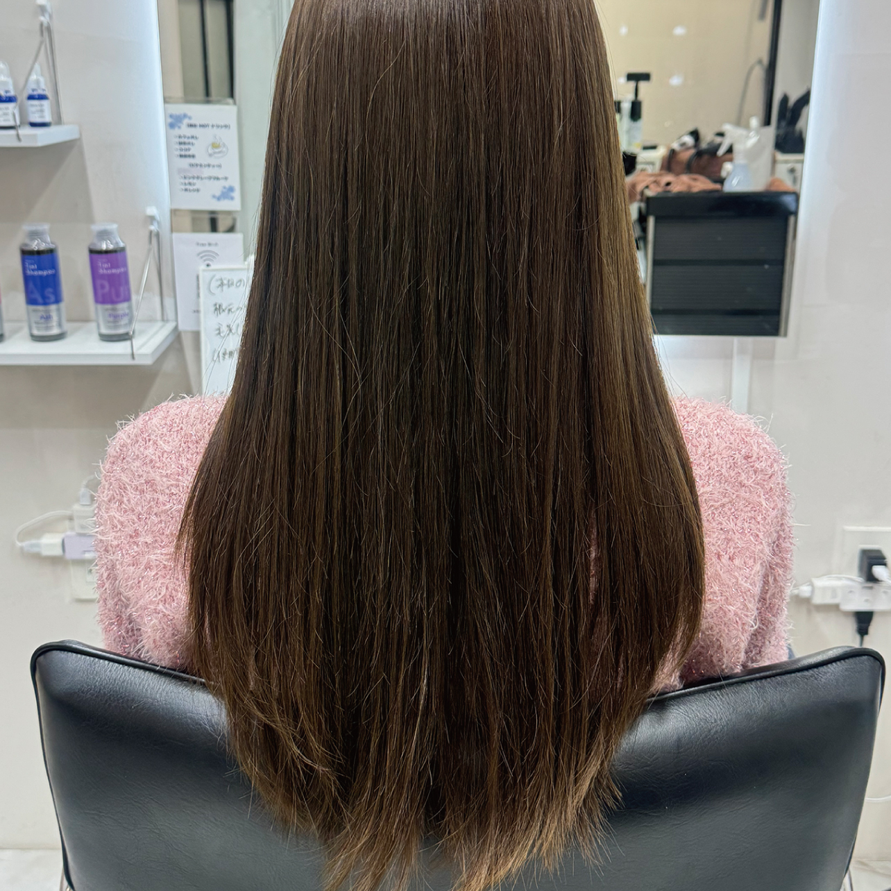 ・赤味が出やすい髪質で、1週間前にノジア ティントシャンプー(アッシュ)を使用。