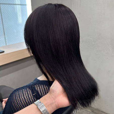 ブリーチ履歴でかなり明るくなっていたが、真っ黒にしたいため3レベルのN(ナチュラル)にSi(シルバー)でグレイ味を足して重たく見えないように。