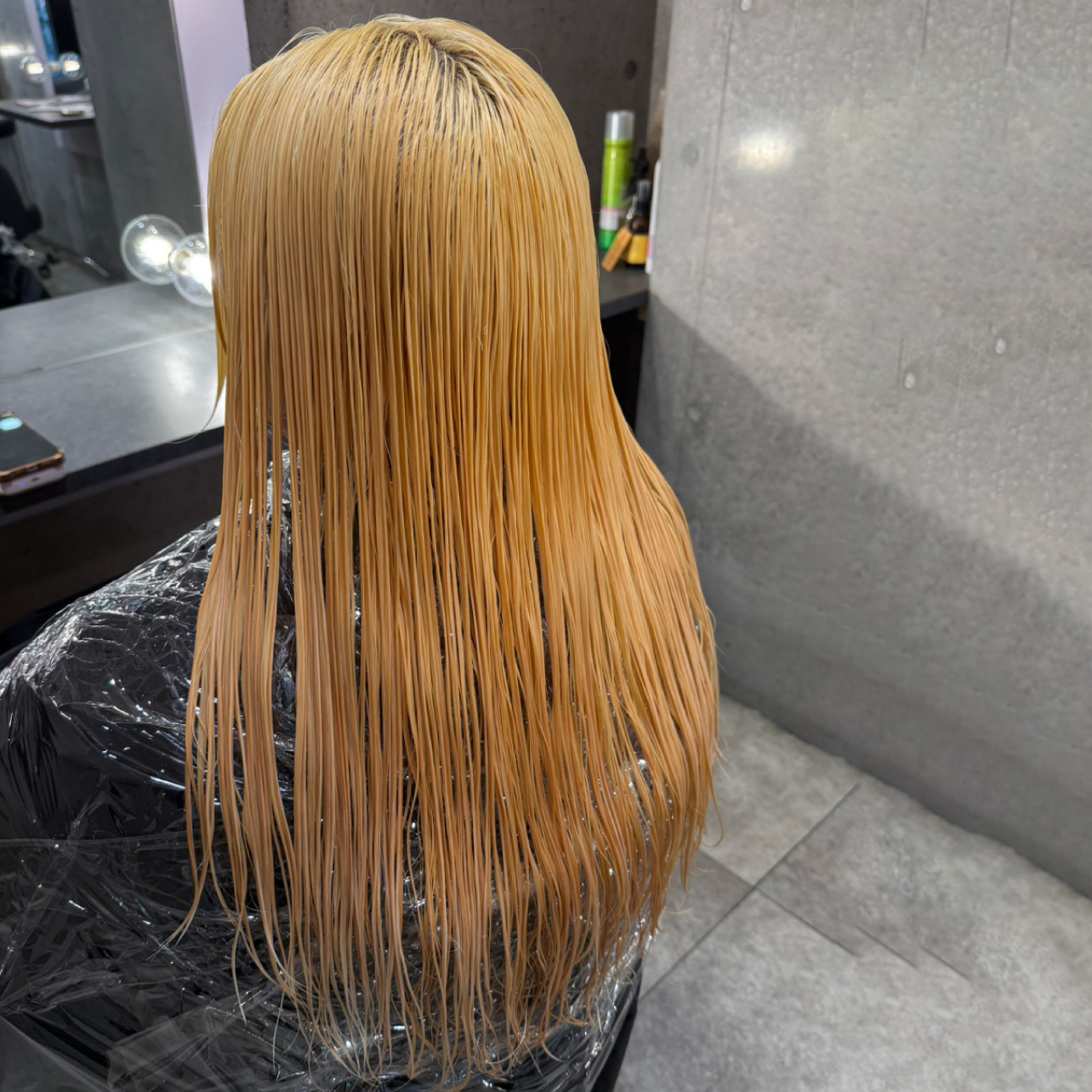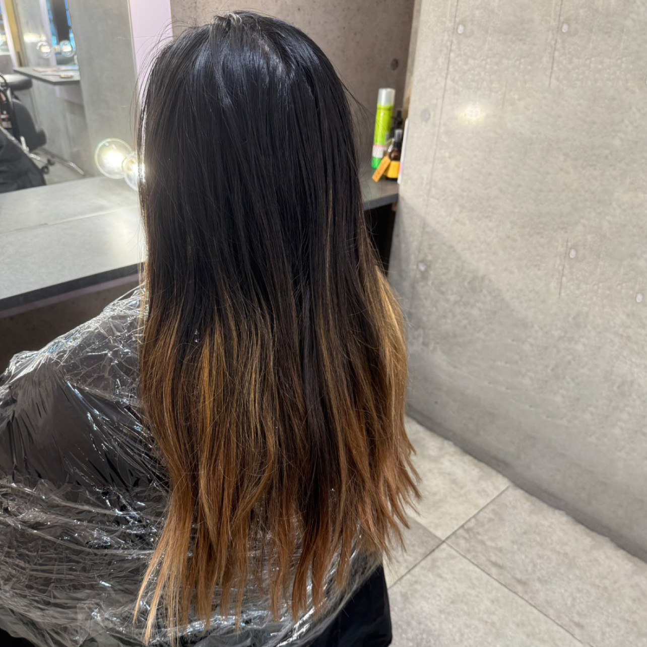 毛先:ブリーチ2〜3回、バレイヤージュ+ハイライト