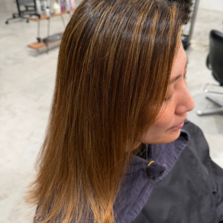 〈全体〉 1剤:ターコイズ+I-13BV10% 2剤:4%×1 (BV:ブルーバイオレット、を使用)