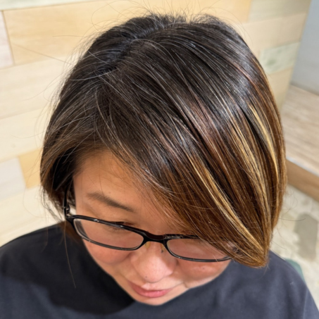 白髪ぼかしハイライト 白髪染め 明るい白髪染め