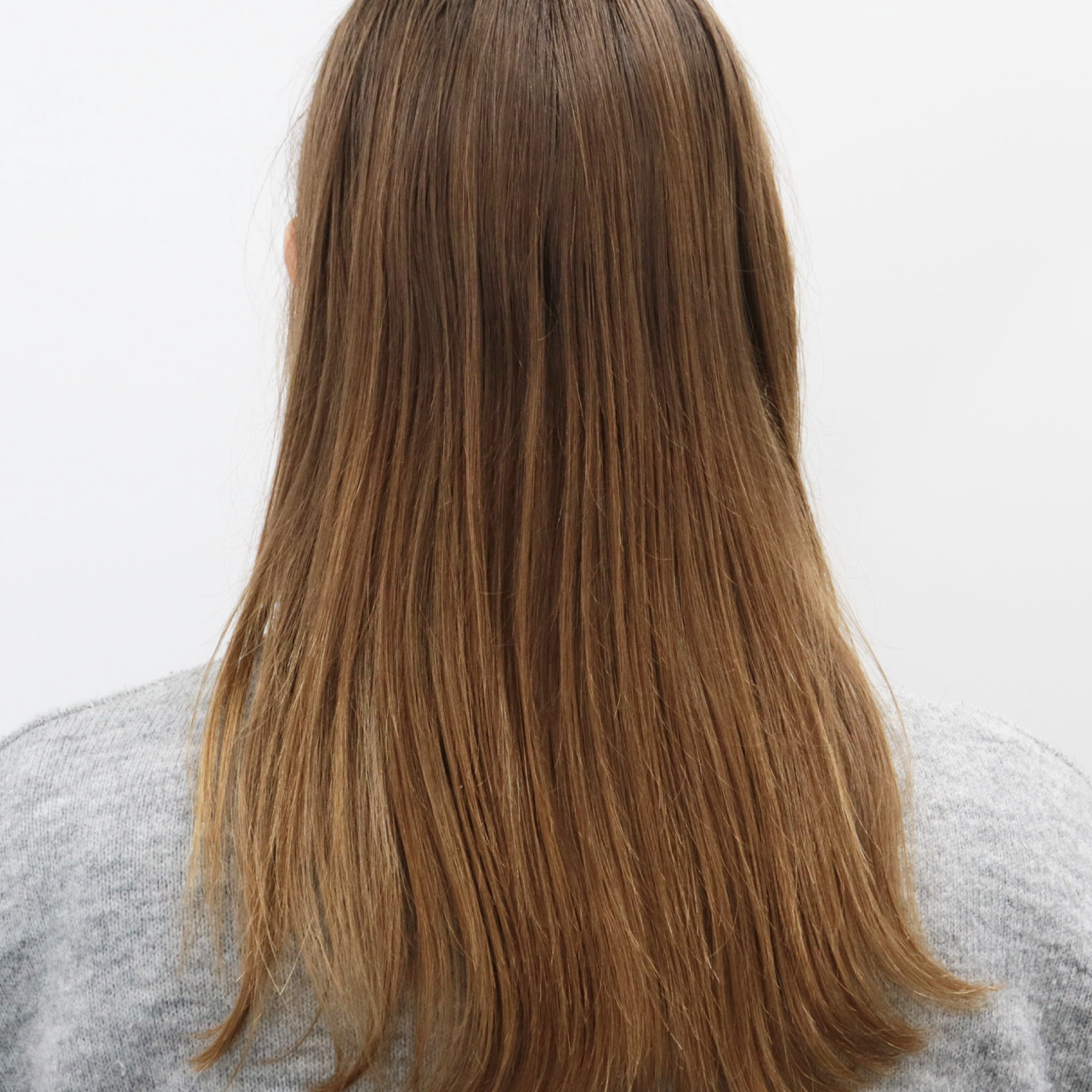 人気のローズピンクのカラーリング。オンカラーでは10分放置後、グラデーション部分をぼかす様にオーバーラップして+5分放置します。