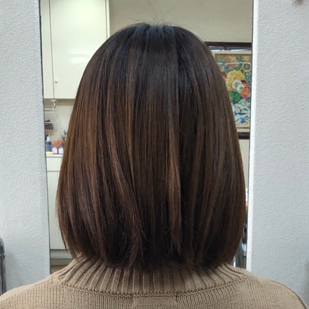 ベースがあまり明るくない髪に濃厚な色味を出すために、アクセントカラーに近い濃さの5LvのP(ピンク)をメインに、リフト力のある13LvのA(アッシュ)とP(ピンク)を組み合わせて、加減法レシピで施術。ブリーチなしでもワンメイクで濃厚でディープなピンクカラーに。