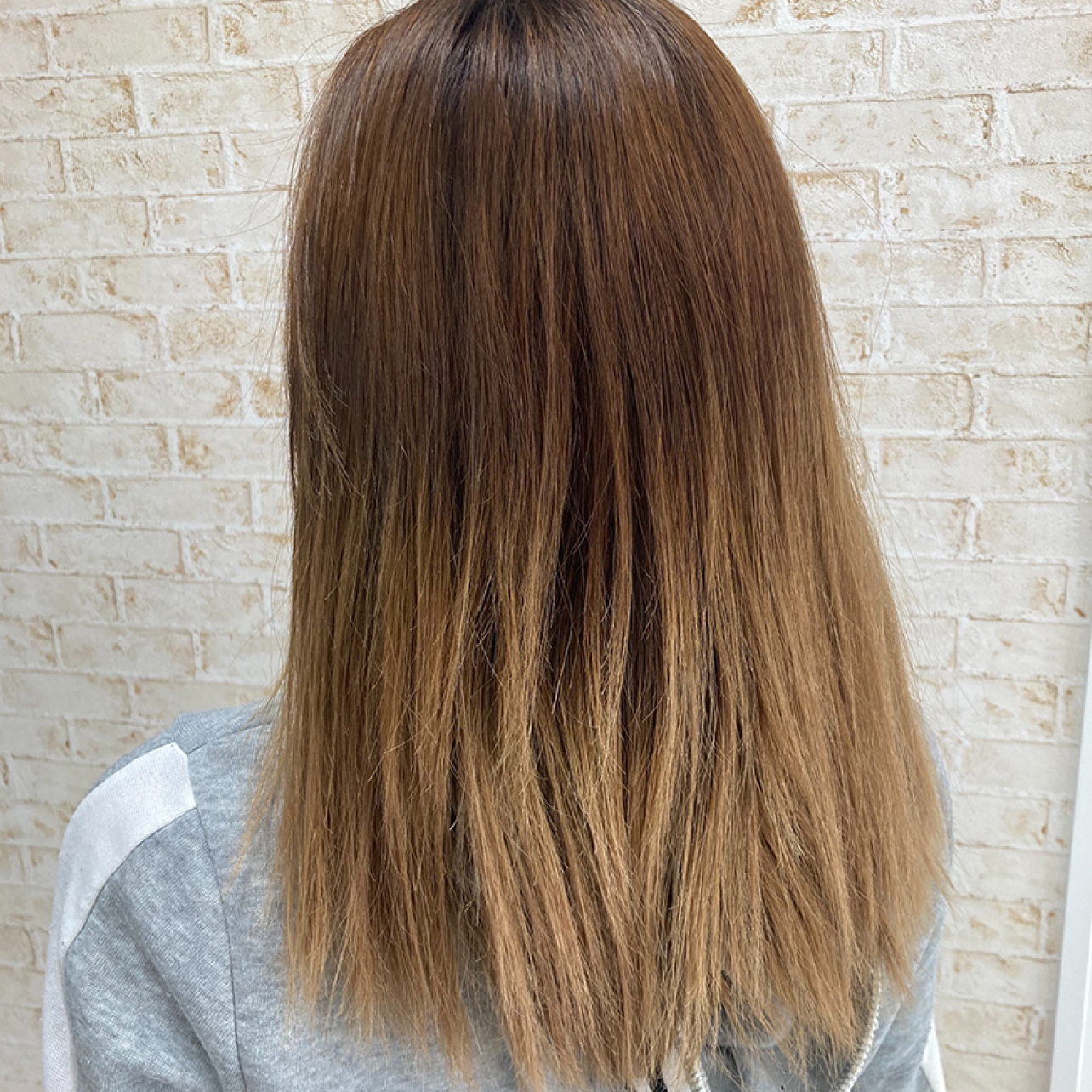 ブリーチ履歴の重なったロングなので塗布の時間差によるムラを減らすために、クリアの比率をかなり多めに調整して、じっくり発色させる施術で淡いペールピンクカラーに。