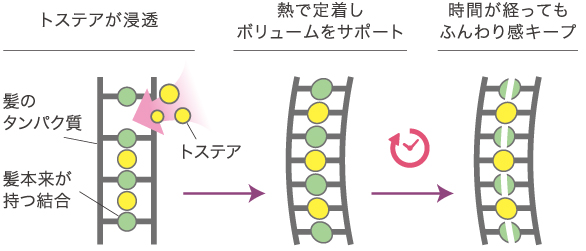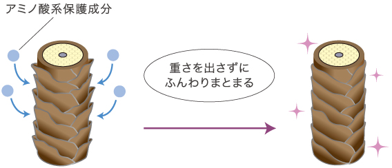 硬くならず、しなやかな仕上がりで、髪のハリ・コシをアップ