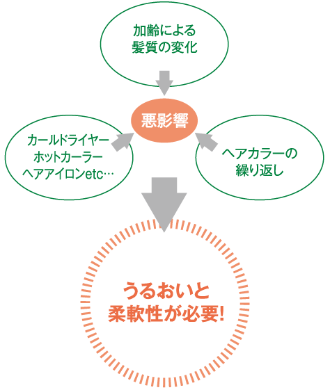 お肌の美容液にもわれる3種のコラーゲンの独自処方により、 元々髪に存在しないコラーゲンをたっぷり浸透・しっかり定着!